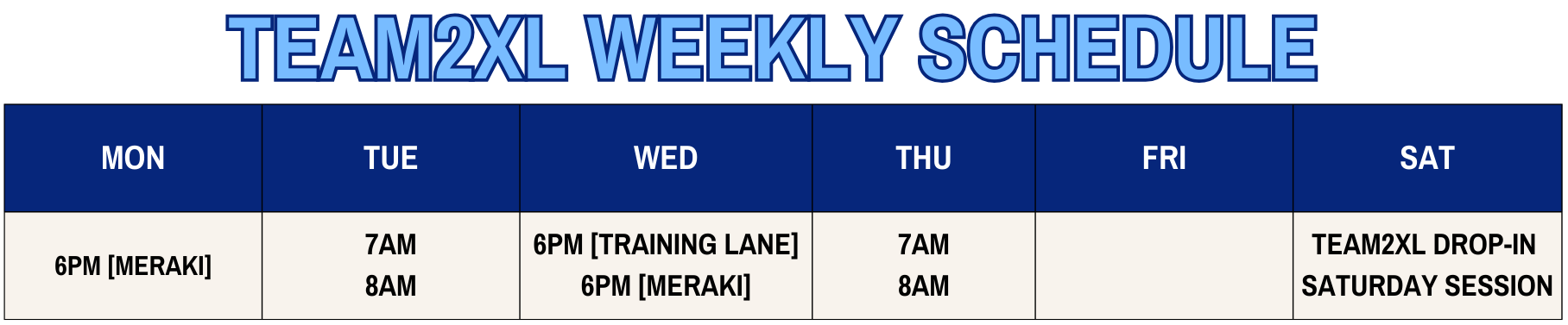 Curious to try without the commitment? Join us on Saturday’s for the TEAM2XL Drop-In!